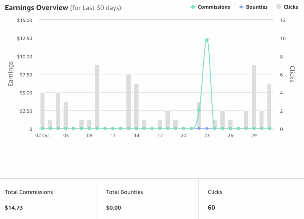 - Affiliate Marketing: $14.73 (Amazon associates)
